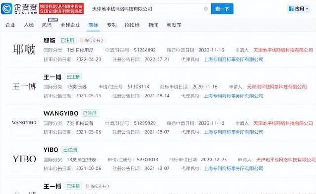 天津地平线网络科技有限公司由王一博持股70%,已申请注册多枚“王一博”“耶啵”“WANGYIBO”“YIBO”商标,涉及运输工具、机械设备等领域,国际分类涉及日化用品、乐器、珠宝钟錶等,当前部分商标已注册成功。北京博远文化科技有限公司由王一博持股60%,担任监事。根据网上资料显示,王一博与乐华娱乐的合约将于2026年10月到期,此前为支持公司上市已续约一次,当前进入续约敏感期但大部分网友推测王一博后续将“不续约”。部分网上账号指出,乐华可能通过“辟谣工作室成立”转移焦点(该工作室实为早年注册),回避合约核心问题。