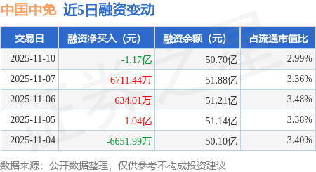 本站消息,11月10日,中国中免(601888)融资买入8.91亿元,融资偿还10.08亿元,融资净卖出1.17亿元,融资余额50.7亿元,近20个交易日中有13个交易日出现融资净买入。