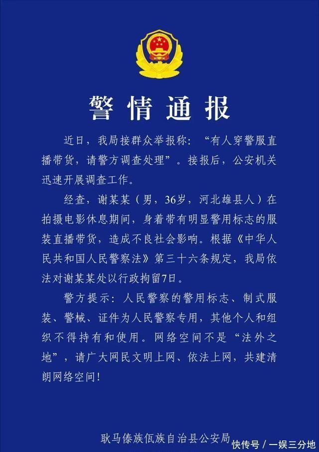 随后,9月17日 警方发布通报 谢孟伟被行政拘留7天 账号遭封禁