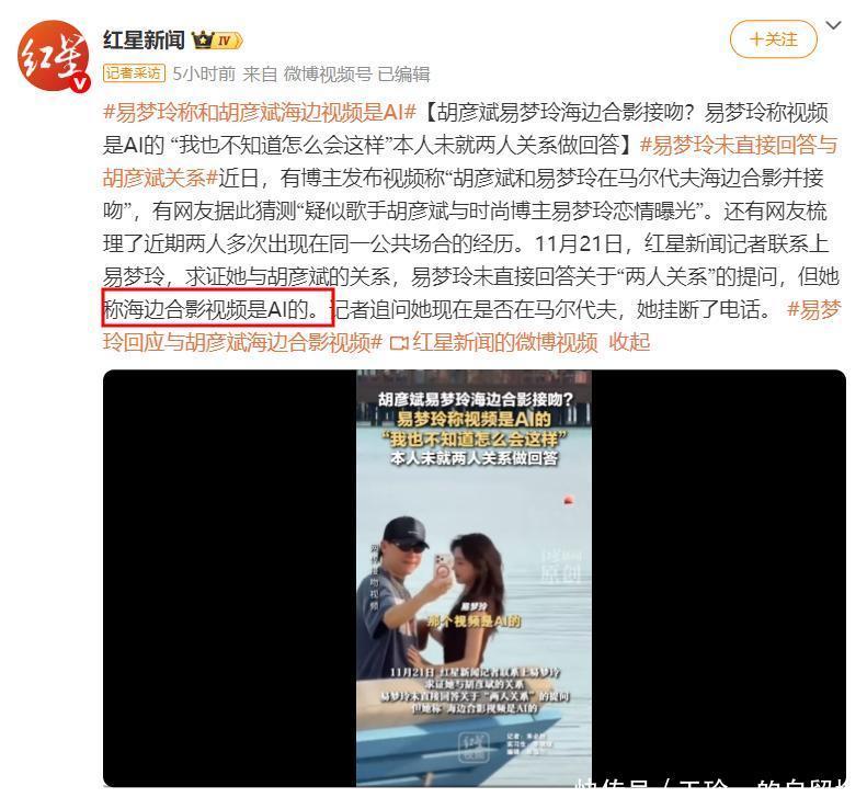 11月21日下午,红星新闻突然报道称易梦玲说海边视频是AI。