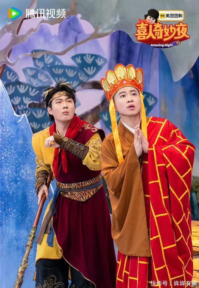 杨雨光(右)在《真假美猴王》中助演 这种“可用之处”源于他独特的人物塑造能力,其根基可以追溯到他大学时期第一次深入地观察与模仿。 “我第一次模仿的那个人没有任何知名度,他是一个卖报纸的。”杨雨光回忆道,“这是我在大学观察生活的第一个人物形象。”那个卖报人和他年纪相仿,但肢体状态特殊,“通俗意义上来讲,他其实是有一点小儿麻痹。”为了贴近角色,杨雨光不断地向他买报纸,与他交流,询问他的生活和习惯。“我们成了朋友……这是我第一个深入观察并自发模仿的角色和人物。” 他从这段经历中提炼出模仿,或者说塑造人物的关键:“他内心当中最在意的事情是什么,我觉得这个是最关键的。”这种方法论被他完全带到了喜剧舞台上,并在《开学第一天》中得到了完美体现。杨雨光饰演高龄复读班长,以45度角扭身的怪异姿势、刻意舞台腔的嘶吼,塑造了一个既夸张又真实的人物形象。他说这种处理是“刻意地诠释某种权威”,因为“班长会觉得自己如果这样说话的话,班里的同学会更信服一点,更像老师一点”。